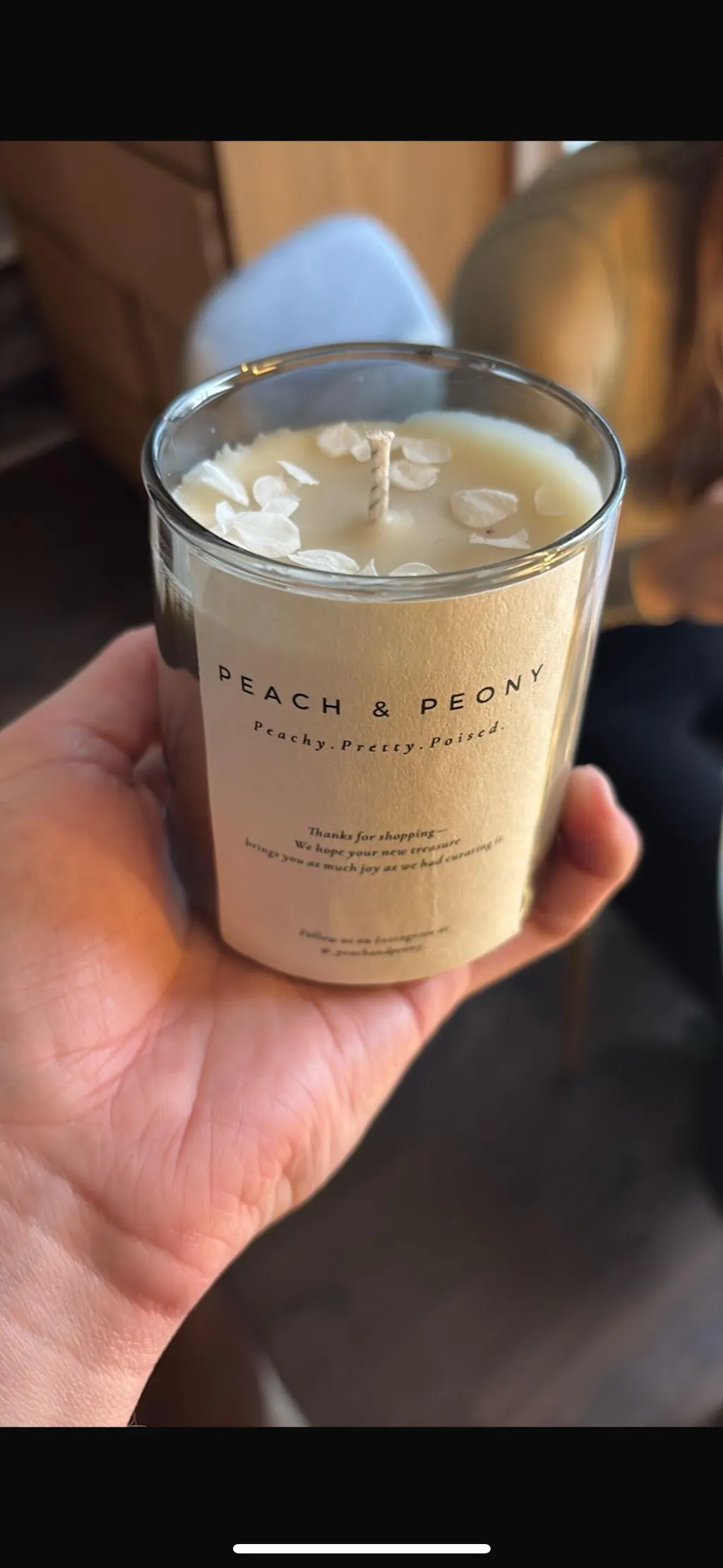 Each candle is thoughtfully handcrafted, and scent variations may occur. If you have allergies to coconut, beeswax, peach, floral oils, sandalwood, black tea, or related botanicals, please use with care.